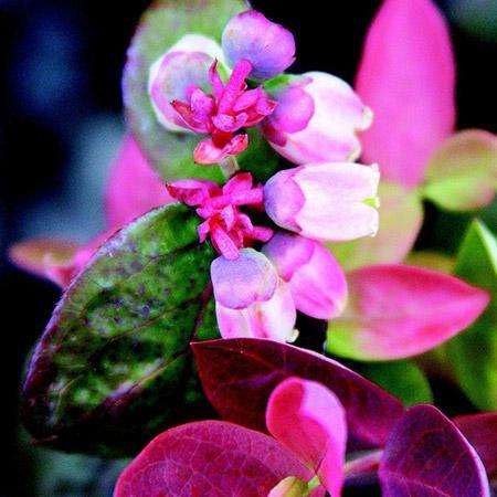 Not only is this plant unique for the flavorful berries that it produces, but it also has colorful foliage. Leaf colors range from a pinkish-yellow in the spring, to dark green in the summer, and then in the fall and winter the leaves turn a dark shade of purple. This berry will keep its leaves through winter so it does not look like other blueberry bushes that look like dead twigs.