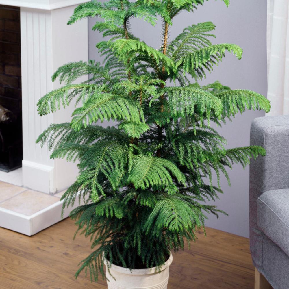 Though it’s versatile enough to grow indoors or out, the Norfolk Island Pine Tree is known for its visual interest and ability to thrive as a unique houseplant. In fact, it imparts both tropical and wintry vibes from season to season, depending on the month.