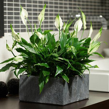 Peace Lilies or ‘Peace Plants’ are excellent choices for the home or office because they are low maintenance evergreens that actually prefer to grow in the shade. They will thrive in areas with low, indirect light.