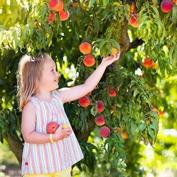 Tip: Once your tree begins to fruit, thin your peaches out. Thinning out your peaches will help to increase your overall production. Peaches on the top and outside of the tree will likely be ready to pick first. They will be fully ripe when there is no green left on the skin and they come off with a slight twist.